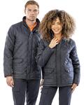 Corduroy collar, Stud closing front storm flap, Full length zip closing, Two patch side pockets, Studded rear saddle vents, Inside chest pocket, Cut away label